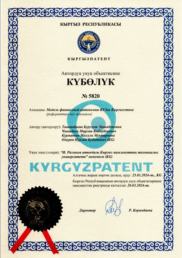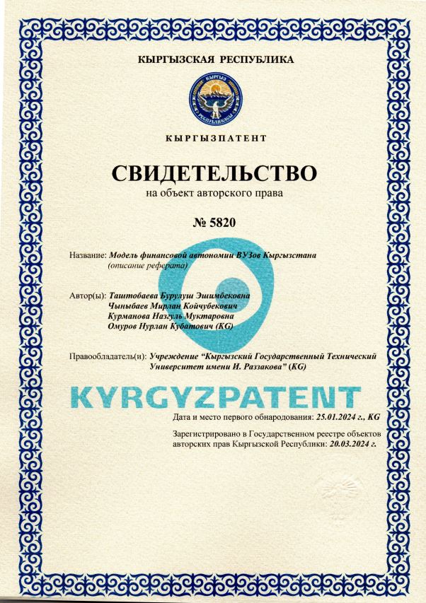 Модель финансовой автономии Свидетельство на авторское право Модели финансовой автономии вузов Кыргызстана
