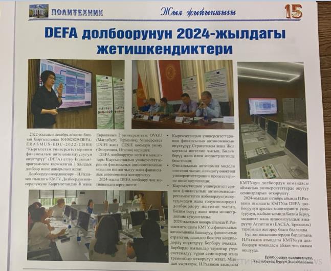 - Политехник: наука, образование и инновация, 2024 г. 15-стр. – DEFA долбоорунун 2024-жылдагы жетишкендиктери
