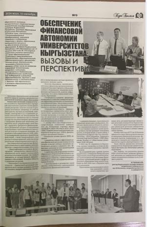 - Кут Билим №38 (10171) 11-октября, 2024 г. 13-стр. – Обеспечение финансовой автономии университетов Кыргызстана: вызовы и перспективы